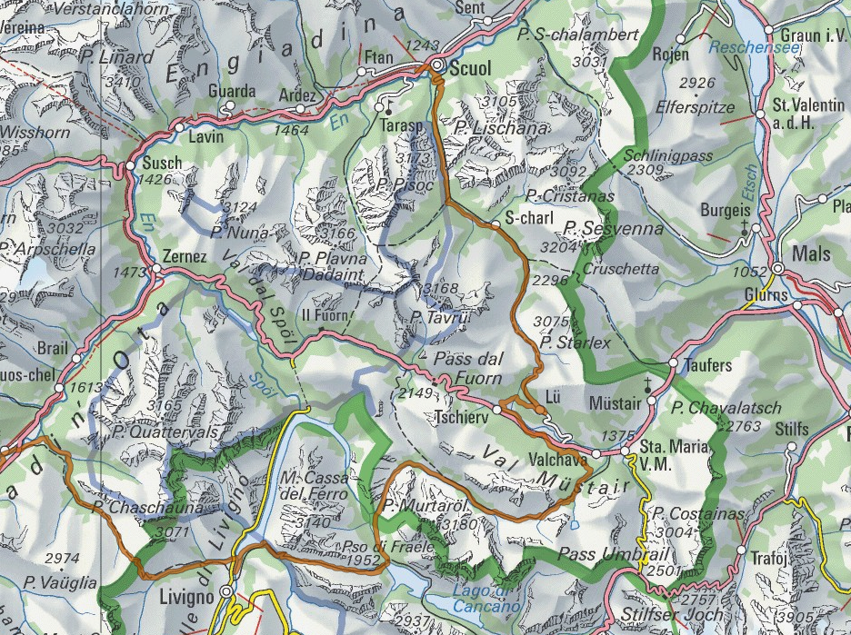 Kartenausschnitt Alpine Bike Etappe 1, Scuol – Tschierv – Livigno; Quelle: http://map.mountainbikeland.ch