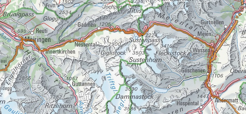 Kartenausschnitt Alpine Bike Etappe 8, Andermatt – Meiringen; Quelle: http://map.mountainbikeland.ch