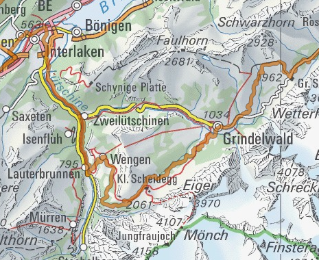 Kartenausschnitt Alpine Bike Etappe 10, Grindelwald – Interlaken; Quelle: http://map.mountainbikeland.ch